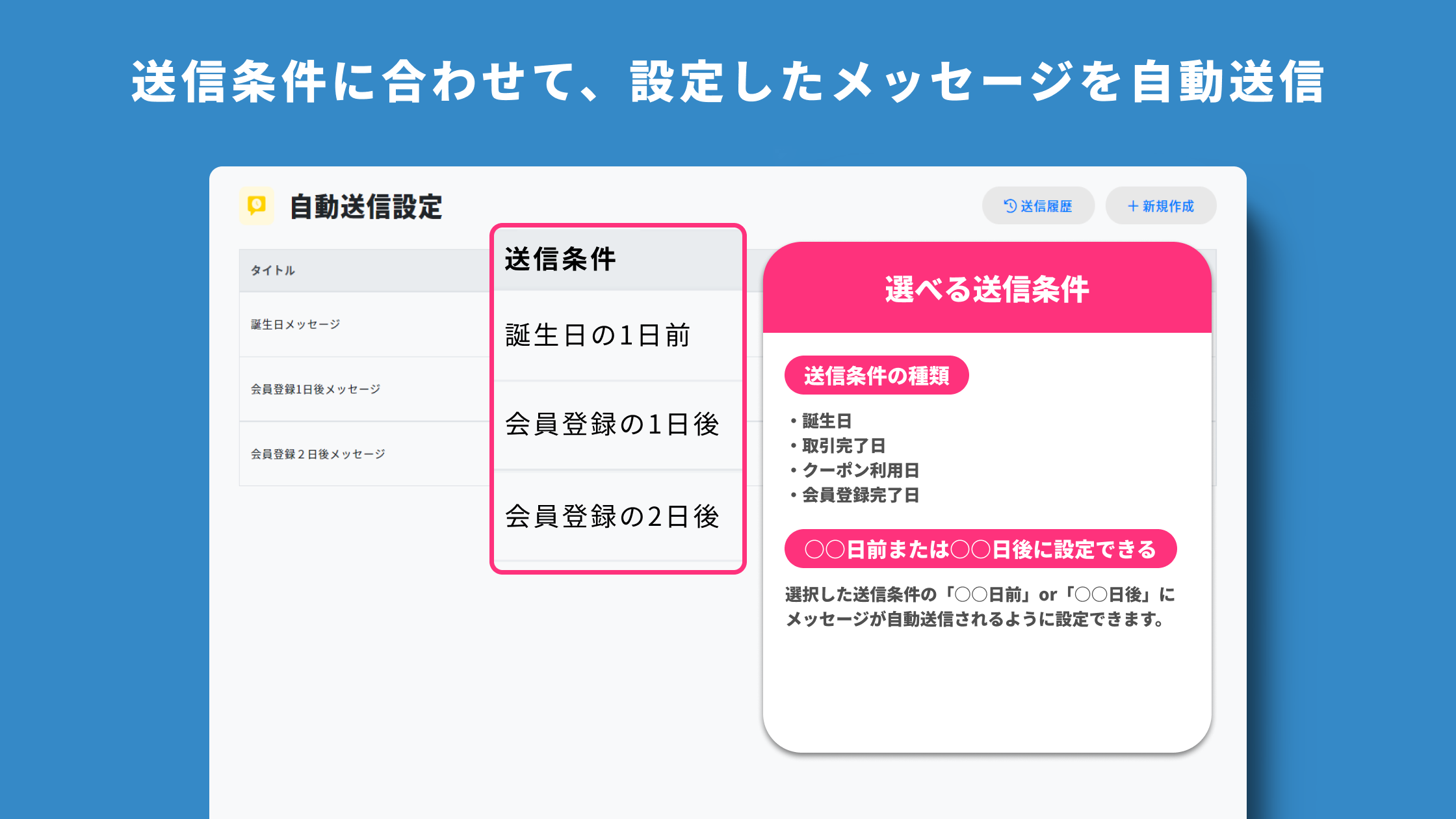 「自動メッセージ送信」機能では、LINEメッセージの自動化・効率化が実現します。