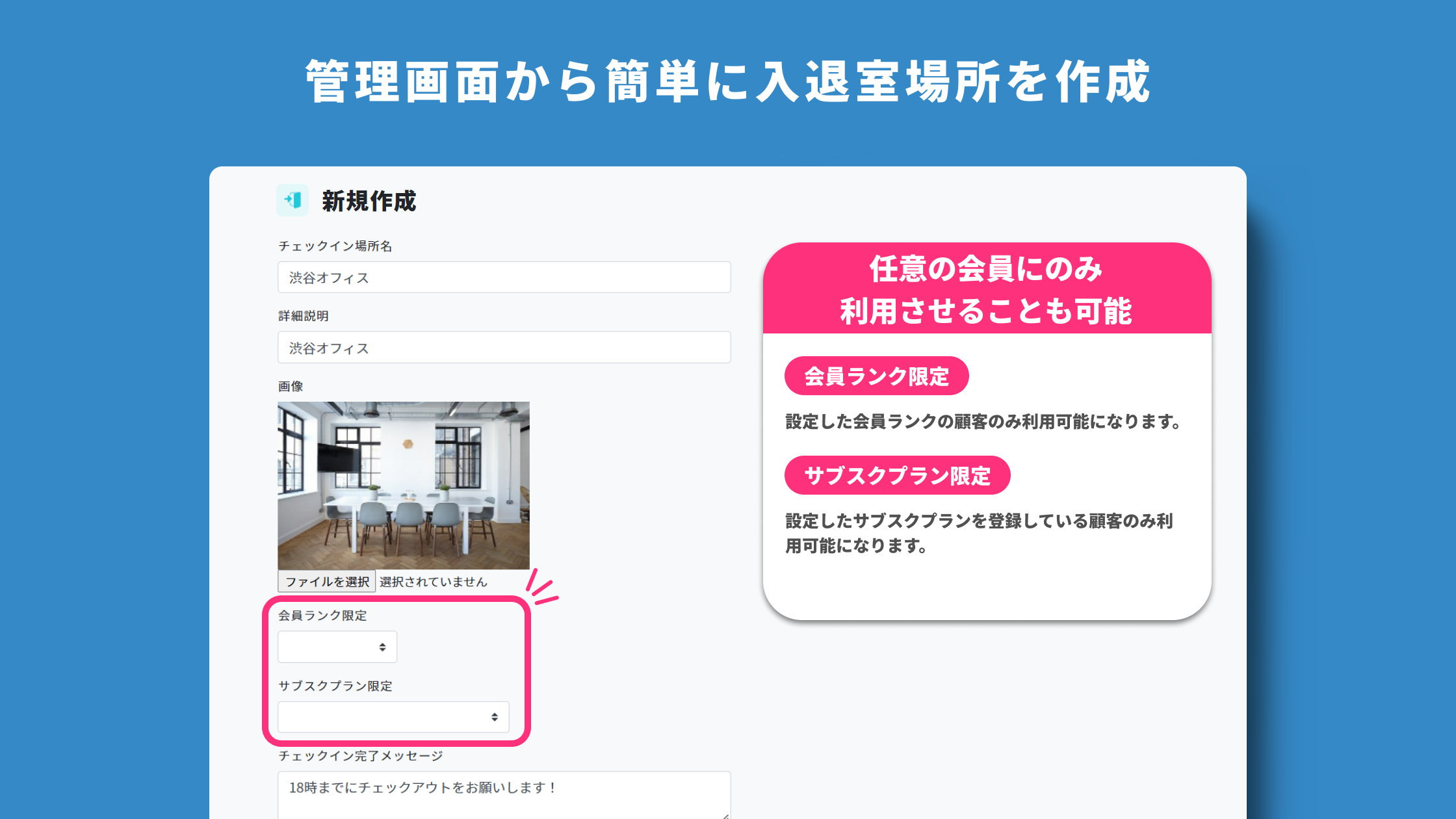 「入退室管理」機能では、LINEミニアプリにチェックイン・チェックアウト機能を持たせることができます。